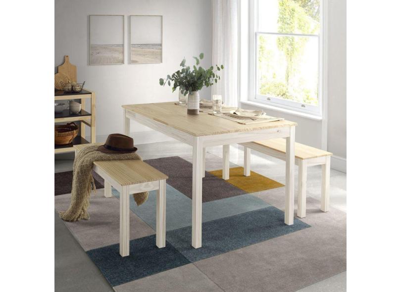 O menor preço encontrado no Brasil para Mesa de Madeira Maciça 4 Lugares com Bancos Mandacaru Cabecasa MadeiraMadeira Bege/Branco atualmente é R$ 1.027,04.