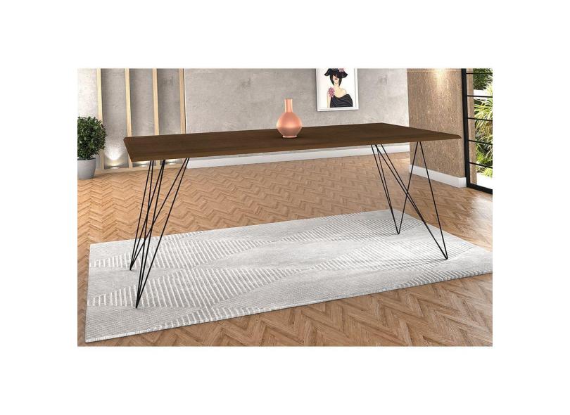 Mesa De Madeira Trama Base Preta Com Tampo Amêndoa 140 X 80 - New Green
