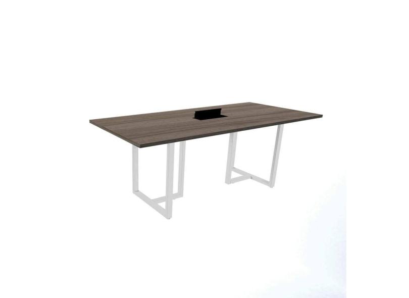 O menor preço encontrado no Brasil para Mesa de Reunião com Caixa de Tomada Retangular 200x90 cm Pé Tubular PE25 em MDP Walnut e Base Branca atualmente é R$ 1.178,32.