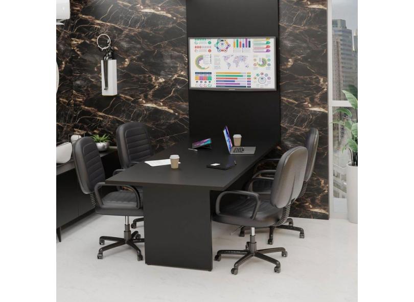 Mesa De Reunião Para Escritório Com Painel de TV 200x100cm Preto