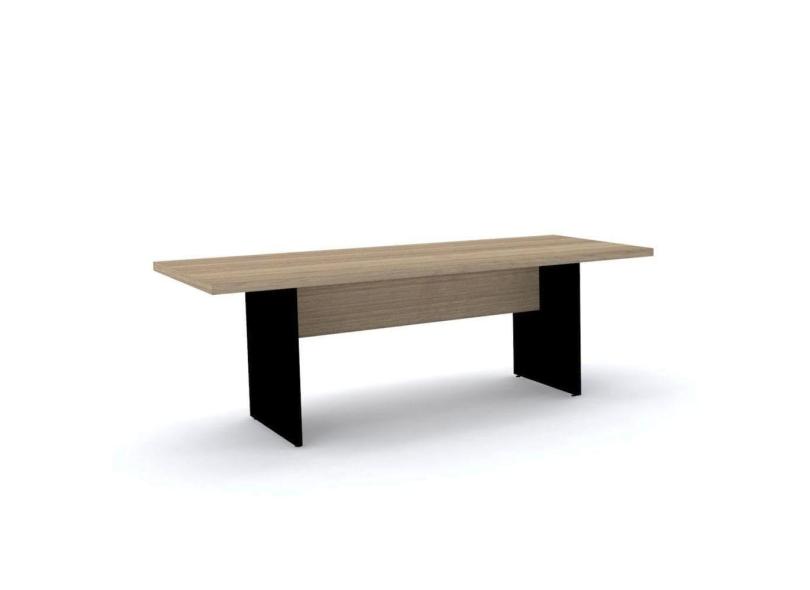 Mesa De Reunião Retangular 200 X 90 Cm Pé Painel Pe40 Em Mdp Noce Naturalle Base Preta