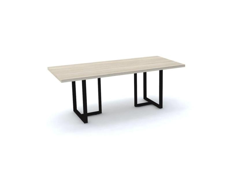 Mesa de Reunião Retangular 200 x 90 cm Pé Tubular PE40 em MDP Cor Nogueira CasaBlanca Base Preta