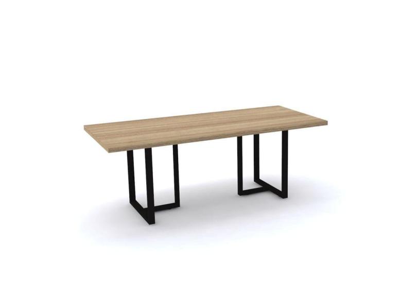 Mesa De Reunião Retangular 200 X 90 Cm Pé Tubular Pe40 Em Mdp Noce Naturalle Base Preta