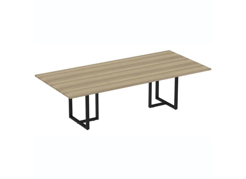 Mesa De Reunião Retangular 260 X 120 Cm Pé Tubular Pe25 Em Mdp Noce Naturalle Base Preta