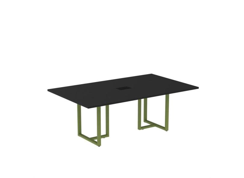 Mesa de Reunião Retangular com Power Box 200x90cm Mr2000p25tub Preto/Verde