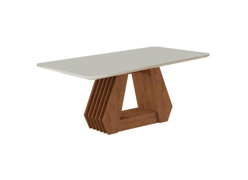 Mesa de Sala Jantar Ágata c/ Tampo Madeirado Vidro 180x90cm Nature/Off White - Cimol