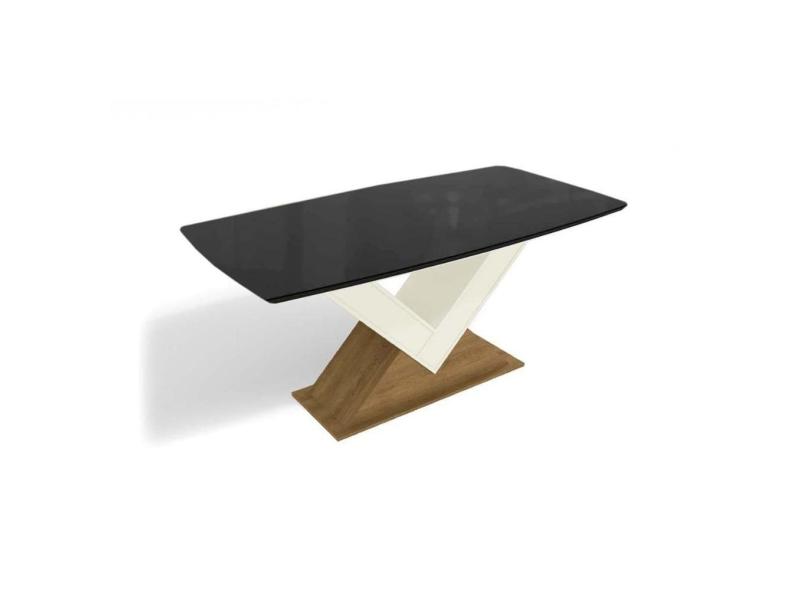 Mesa de Sala Jantar Amora c/ Tampo Madeirado c/ Vidro 90x170cm Freijo/Off White/Preto fosco/Vidro preto - Kappesberg