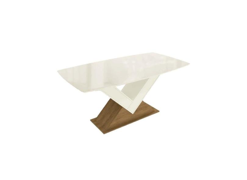 Mesa de Sala Jantar Amora c/ Tampo Madeirado c/ Vidro 90x170cm Freijo/Off White/Vidro Off White - Kappesberg