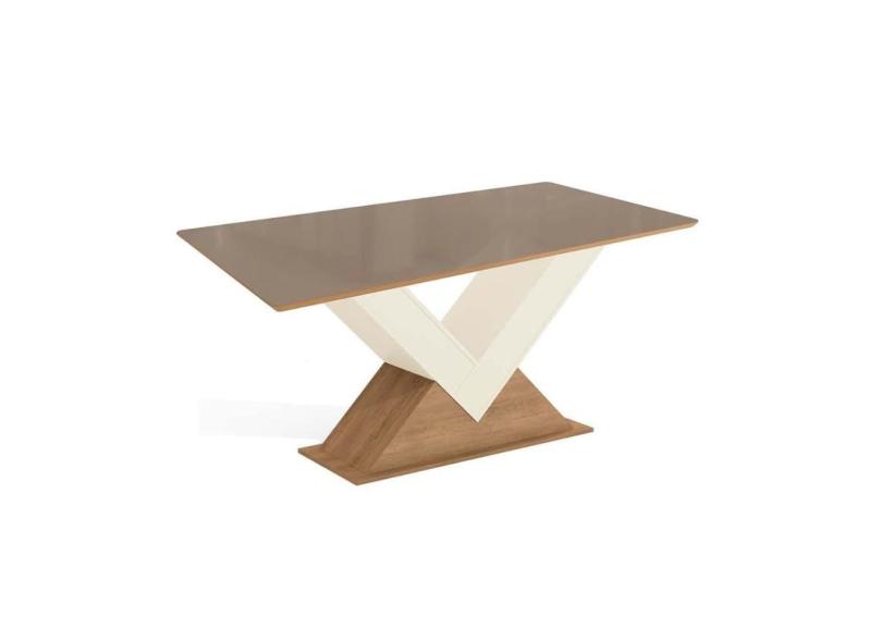 Mesa de Sala Jantar Amora c/ Tampo Madeirado c/ Vidro 90x180cm Freijo/Off White/Vidro Bronze - Kappesberg