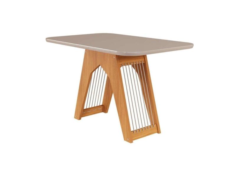 Mesa de Sala Jantar Carol + Tampo Madeirado Vidro 130x80cm Nature/Off White - Cimol