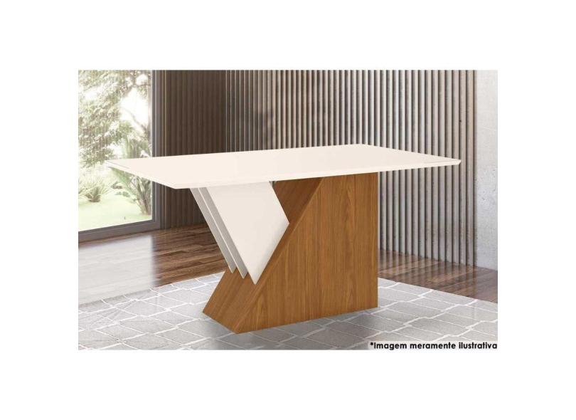 Mesa de Sala Jantar Épic SC25 c/ Tampo Madeirado c/ Vidro Reto 160x90cm Nature/Off White - Henn