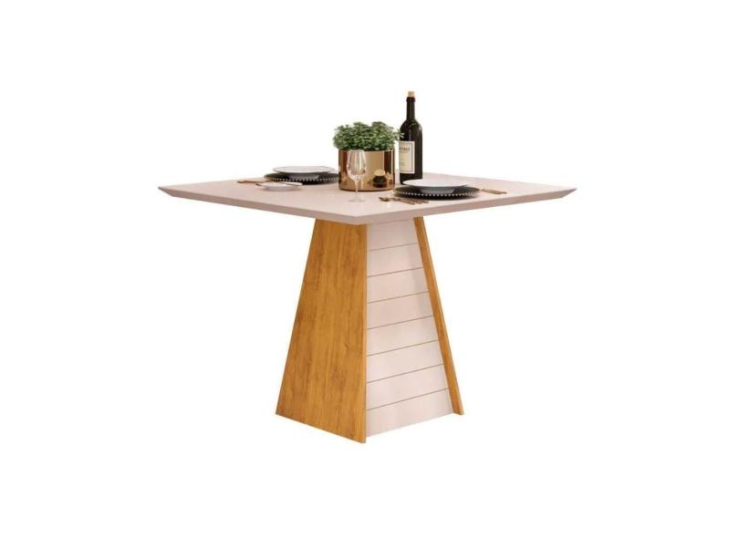 Mesa de Sala Jantar Fler c/Tampo Madeirado Vidro 90x90cm Cedro/Off White/Off White - DJ Móveis