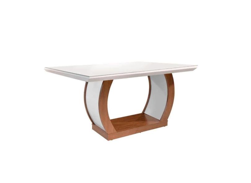 Mesa de Sala Jantar Jade c/ Tampo 180x90cm Madeirado Vidro Canto Curvo - Imbuia/Off White - Rufato