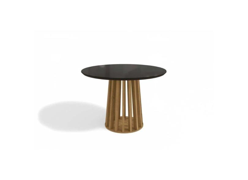 Mesa De Sala Jantar Lavanda Com tampo Madeirado C/ Vidro 105x105cm Nogueira/preto Fosco/vidro Preto