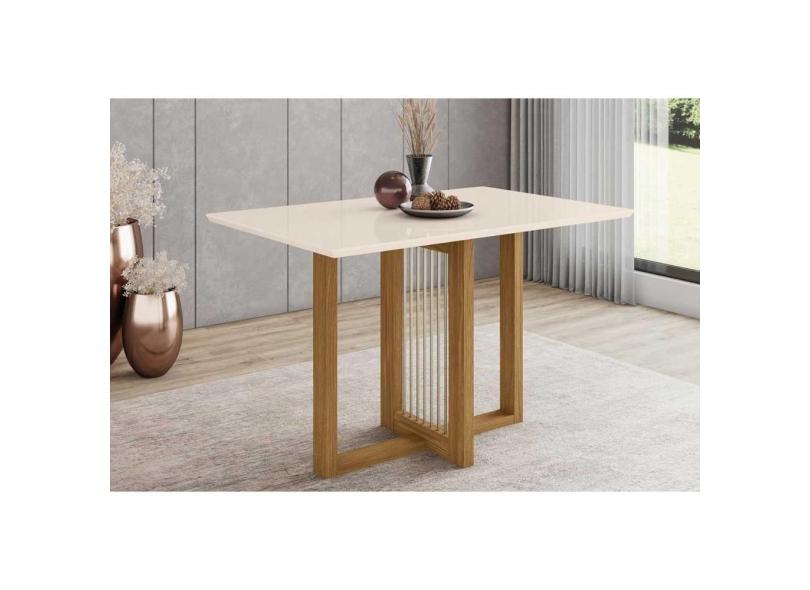 Mesa De Sala Jantar Natalí Sc75 + Tampo Madeirado Reto 120x80cm Nature/off White - Henn