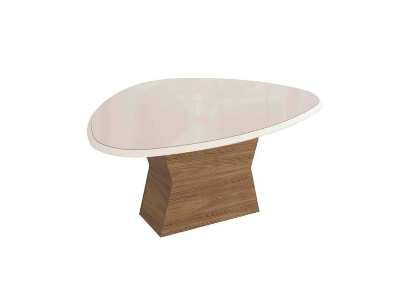 Mesa de Sala Jantar Tília c/ Tampo Madeirado c/ Vidro 105x135cm Nogueira/Off White/Vidro Off White - Kappesberg