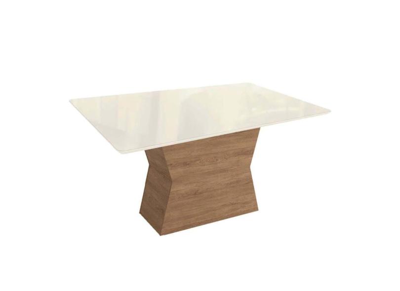 Mesa de Sala Jantar Tília c/ Tampo Madeirado c/ Vidro 90x160cm Nogueira/Off White/Vidro Off White - Kappesberg