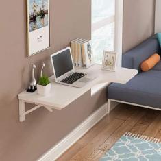 Mesa dobrável de canto para computador, mesa de madeira montada na parede, mesa de estudo, mesa lateral de apoio duplo, mesa de cavalete de cozinha, branca, 120 * 70 * 50 cm/47 * 28 * 20 pol