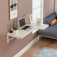 Mesa dobrável de canto para computador, mesa de madeira montada na parede, mesa de estudo, mesa lateral de apoio duplo, mesa de cavalete de cozinha, branca, 80 * 70 * 50 cm/31 * 28 * 20 pol.