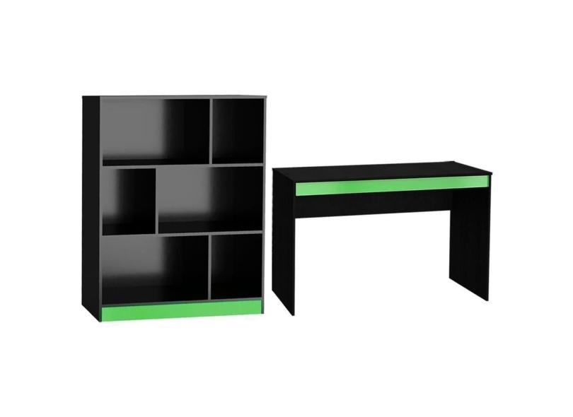 Mesa E Estante Para Escritorio Gamer B28 Preto Verde Novam Preto Verde