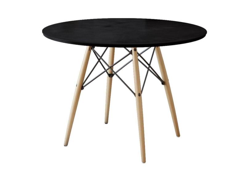 Mesa Eiffel Redondo Tampo De Madeira 90 Cm Preto - Branco