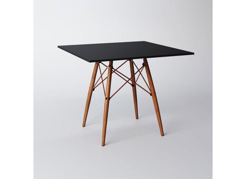 Mesa Eiffel Wood Cobre Tampo De Madeira Quadrada 90 Cm Preto Asturias - Cor: Marrom
