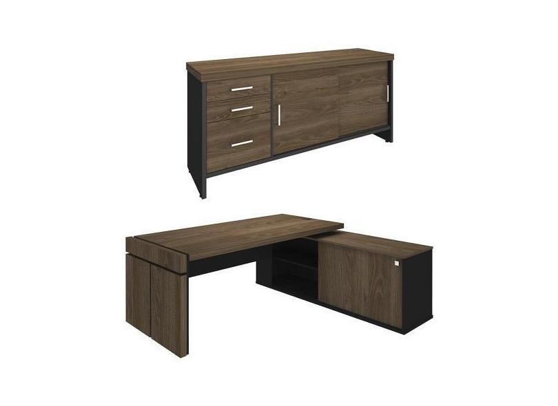 Mesa Escritório Em L E Balcão 2 Portas 3 Gavetas Corp A06 Charuto/Pret