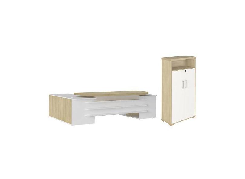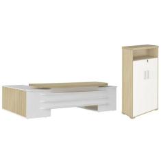 Mesa Escritório Presidente E Armário Alto 2 Portas Corp A06 Carvalho/B