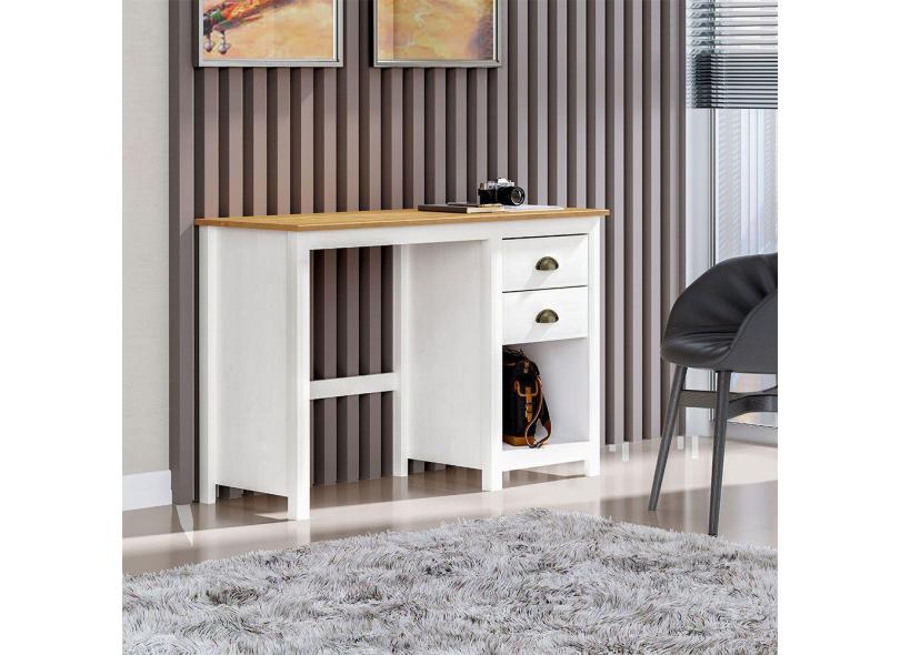 Mesa Escrivaninha 02 Gavetas 01 Nicho 100% Madeira Maciça Topázio Branco/Carvalho Finestra
