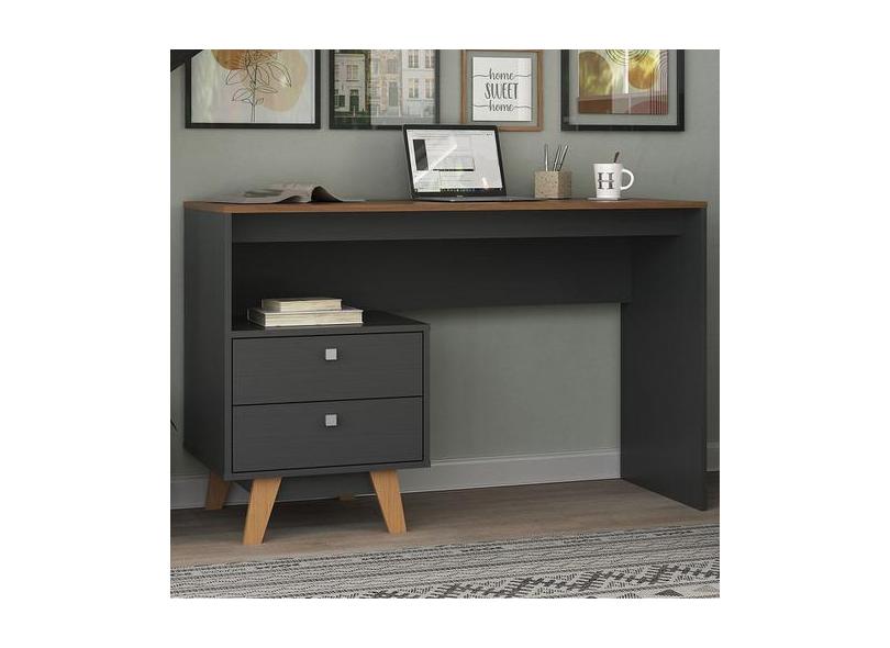 O menor preço encontrado no Brasil para Mesa Escrivaninha 2 Gavetas Grafite/Nogal - Hecol Móveis atualmente é R$ 354,51.