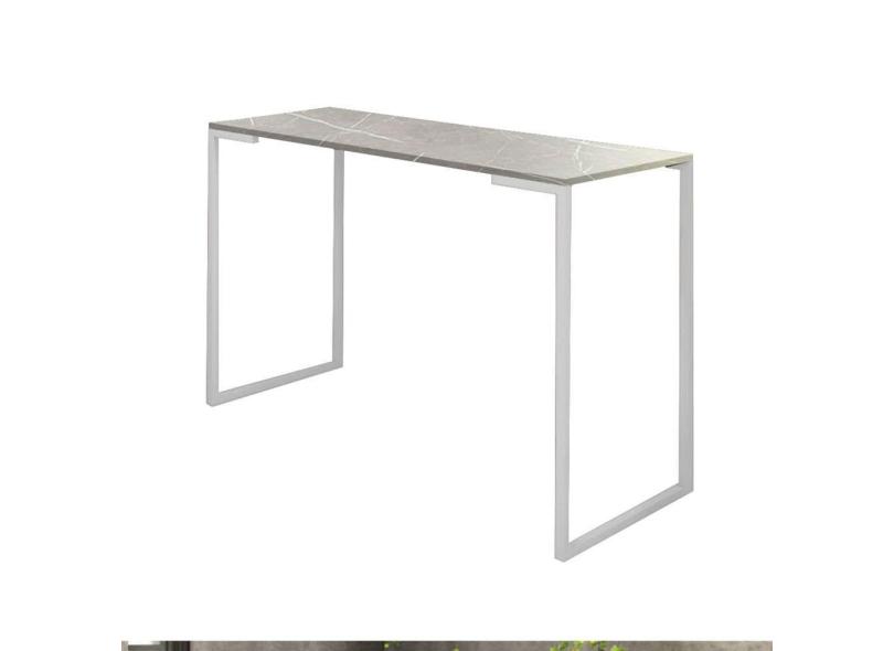 Mesa Escrivaninha 90cm Stan Home Office Industrial Consultório Ferro Branco MDF Marmorizado Cinza - Ahz Móveis