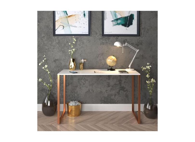 Mesa Escrivaninha Branca E Cobre Office Industrial 90cm - E-LED BRASIL