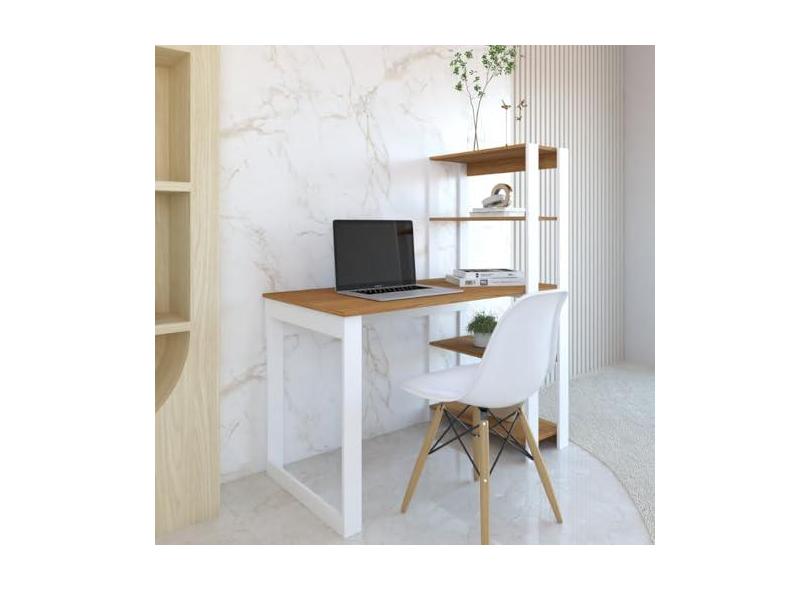 Mesa Escrivaninha c/Estante 4 Prateleiras Licce Branco/Freijó