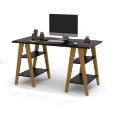 Mesa Escrivaninha Cavalete 1,35x0,66 Tampo 30mm 4 Prateleiras pés em madeira OFERTAMO
