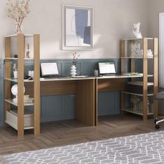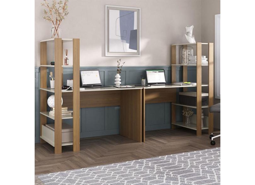 Mesa Escrivaninha Conjunto Match 6 Prateleiras Off White/Carvalho - Pnr Móveis