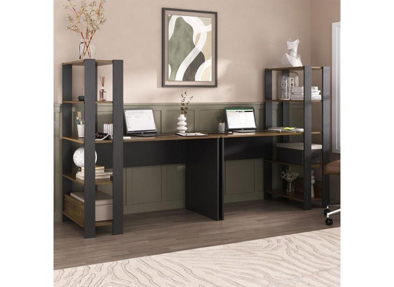 Mesa Escrivaninha Conjunto Match 6 Prateleiras Pinho/Preto - Pnr Móveis