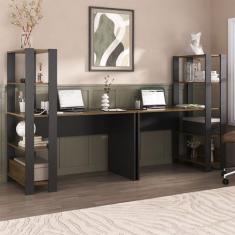 Mesa Escrivaninha Conjunto Match 6 Prateleiras Pinho/Preto - Pnr Móveis
