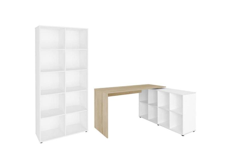 O menor preço encontrado no Brasil para Mesa Escrivaninha Em L Eron E Estante Livreiro 90x187cm Lean A06 Branco/carvalho - Mpozenato atualmente é R$ 1.387,98.