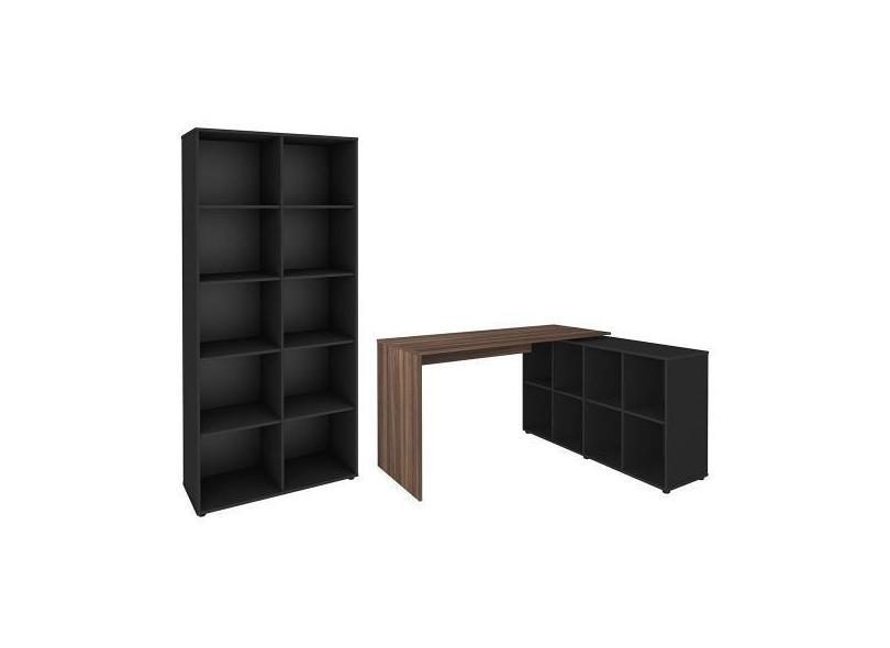 Mesa Escrivaninha em L Eron e Estante Livreiro 90x187cm Lean A06 Ipê/P