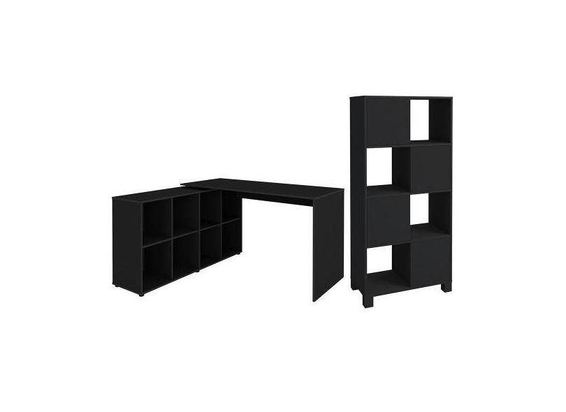 Mesa Escrivaninha em L Eron e Estante Livreiro Maly A06 Preto - Mpozen