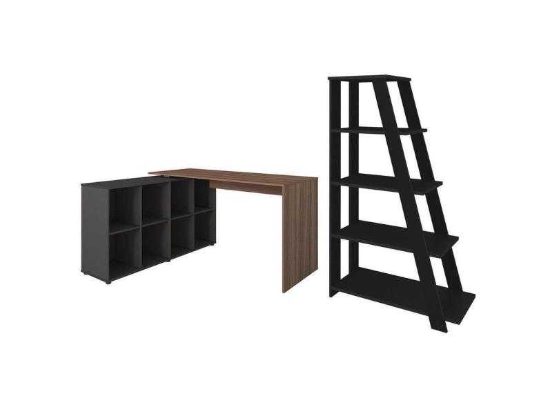 Mesa Escrivaninha Em L Eron E Estante Livreiro Stela A06 Freijó/preto - Mpozenato
