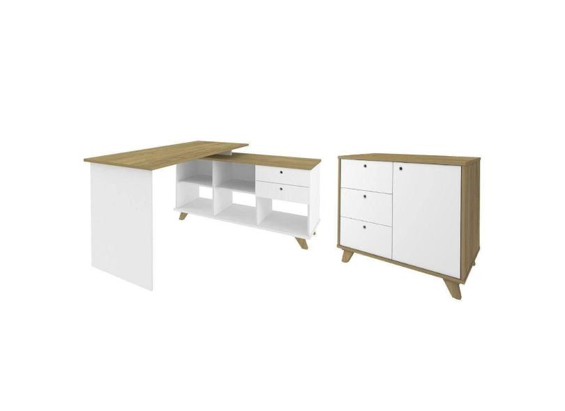 Mesa Escrivaninha Em L Golden E Balcão 1 Porta 3 Gavetas Merano A06 Olmo-branco - Mpozenato