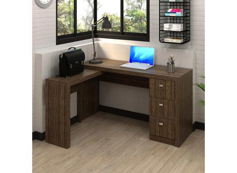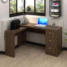 O menor preço encontrado no Brasil para Mesa Escrivaninha em L para Escritório 3 Gavetas 136x113cm Nogal atualmente é R$ 528,00.