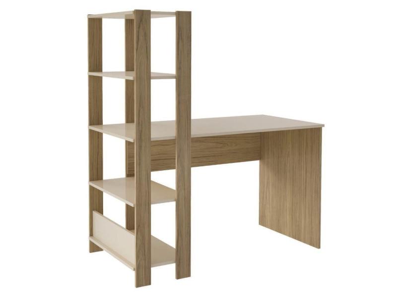 Mesa Escrivaninha Office Com Estante 3 Prateleiras Match Carvalho Off White