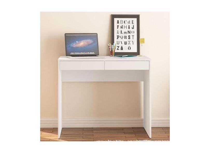 Mesa Escrivaninha Tijuca 90cm 2 Gavetas Branco - Politorno, Branco, 16