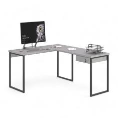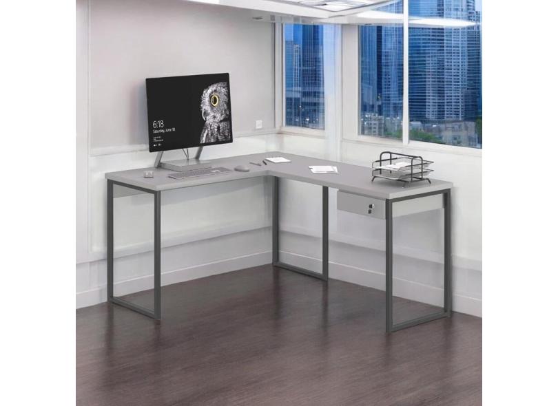 Mesa Home Office Escrivaninha L Industriale Cinza com Gaveteiro