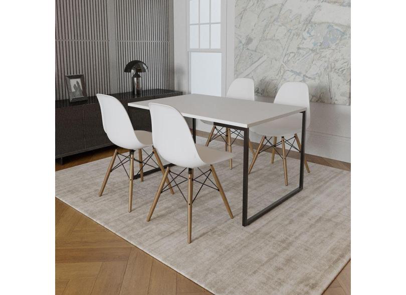 O menor preço encontrado no Brasil para Mesa Industrial Base de Ferro Preto 137x90 Tampo Branco 4 Cadeiras Eiffel Madeira Assento Branco atualmente é R$ 1.271,92.