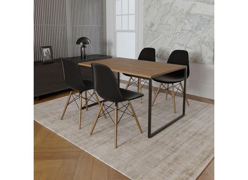 O menor preço encontrado no Brasil para Mesa Industrial Base De Ferro Preto Tampo 137X90 Amêndoa 4 Cadeiras Madeira Assento Preto Marrom atualmente é R$ 1.416,80.
