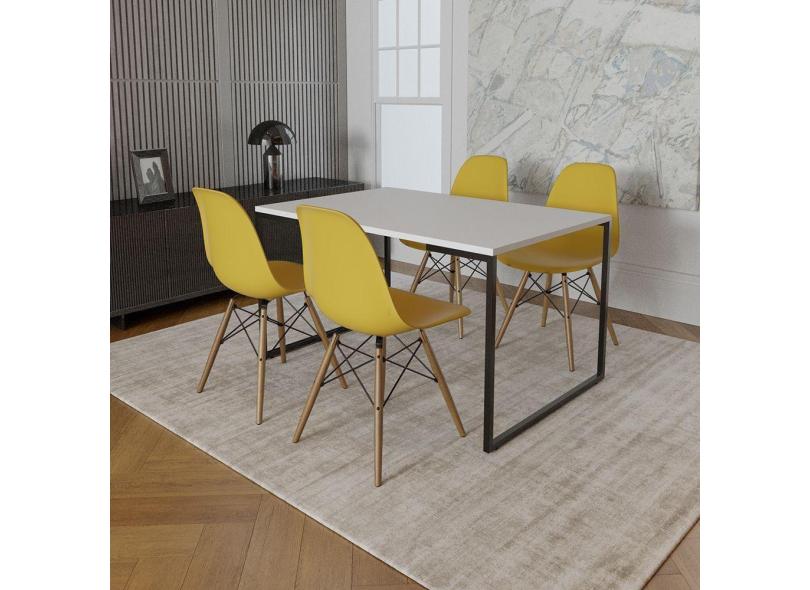 O menor preço encontrado no Brasil para Mesa Industrial Base De Ferro Preto Tampo 137X90 Branco 4 Cadeiras Madeira Assento Amarelo Branco atualmente é R$ 1.487,20.