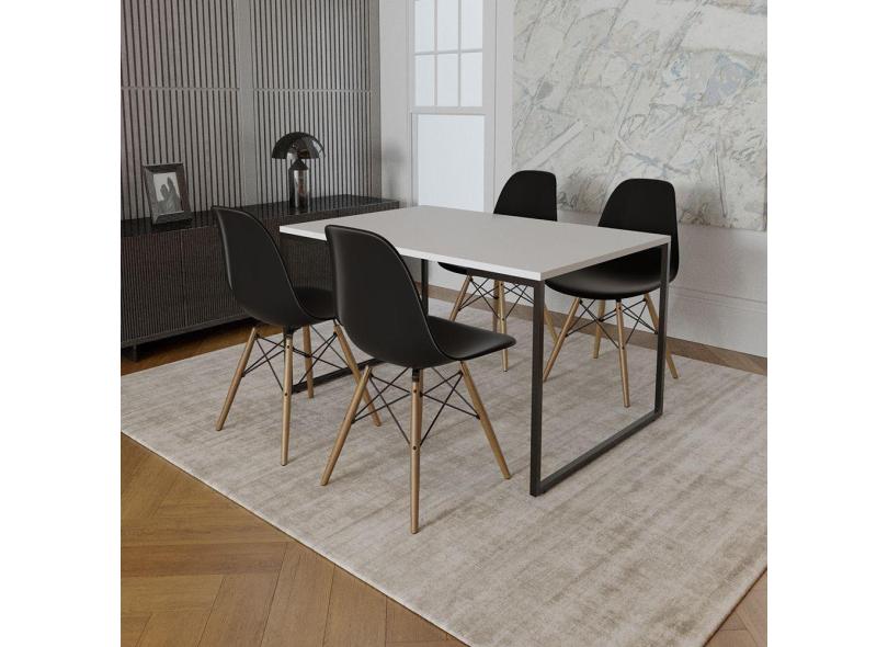 Mesa Industrial Base De Ferro Preto Tampo 137X90 Branco 4 Cadeiras Madeira Assento Preto Branco